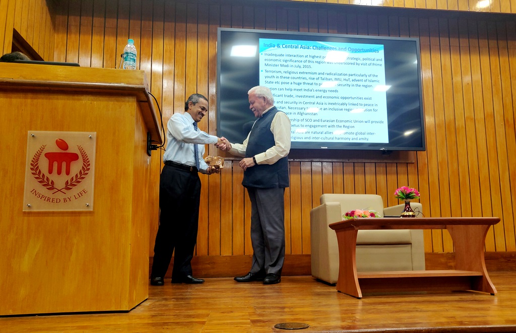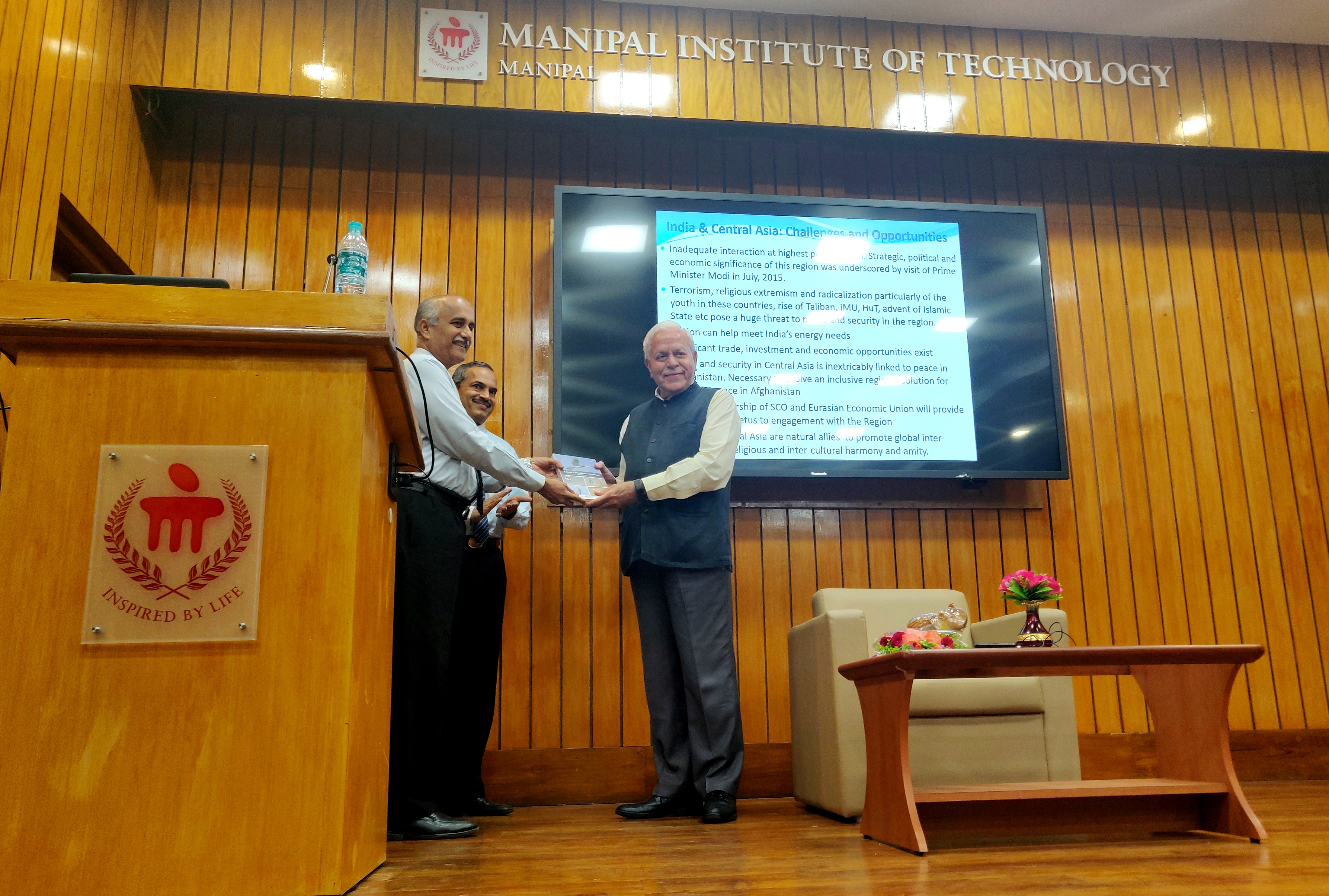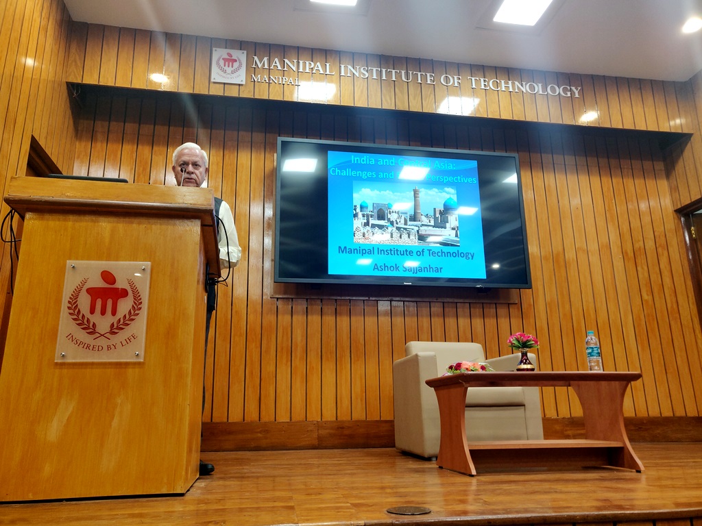The Department of Geopolitics and International Relations, Manipal Academy of Higher Education (MAHE) in collaboration with Manipal Institute of Technology organised a Distinguished Lecture by Ambassador Ashok Sajjanhar, formerly India’s Ambassador to Kazakhstan, Sweden and Latvia on 7 May 2019. The Ministry of External Affairs, Government of India, has been sponsoring the Distinguished Lecture. The lecture on the theme ‘India and Central Asia: Challenges and Future Prospects’ centred on the geopolitical significance of Central Asia and its relevance for India’s strategic calculations. Ambassador Sajjanhar elaborately discussed the emergence of the Central Asian states as independent entities after the demise of the Soviet Union and the end of the Cold War. The geographical location of the Central Asian countries and its implications for their approach towards connecting to the outside world formed a major part of the lecture. How some of the Central Asian states, despite their landlocked nature, have converted this perceived geographical disadvantage into an opportunity through a network of connectivity projects was explored during the lecture. The richness of these countries in terms of natural resources, including energy resources like uranium and natural gas, and how they affect the foreign relations of these countries was discussed in detail. Ambassador Sajjanhar also dwelt comprehensively on the political contours and the socio-economic indicators the Central Asian states.