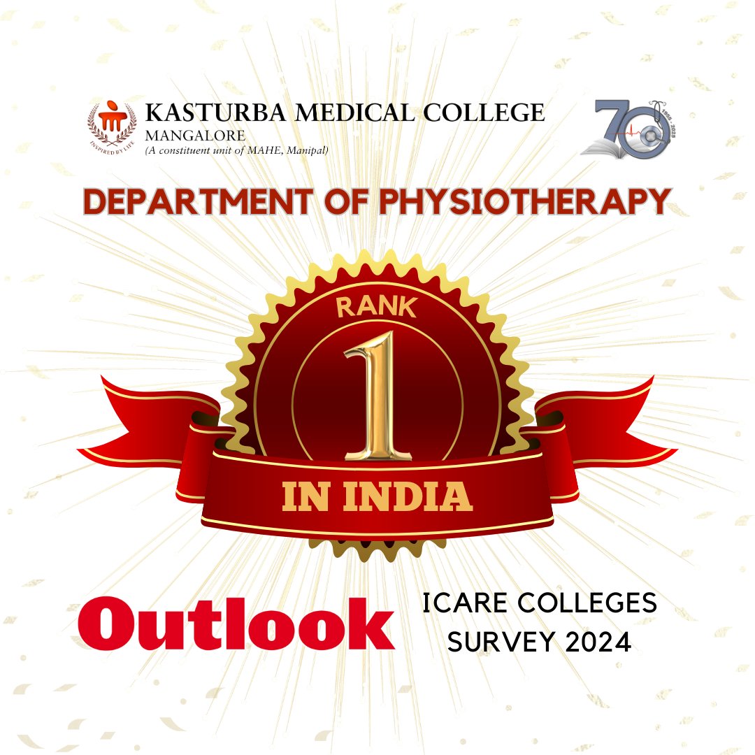 We are thrilled to announce that the Department of Physiotherapy at Kasturba Medical College, Mangalore, has been ranked as the No. 1 Physiotherapy Department in India by the Outlook ICARE Colleges Survey 2024!