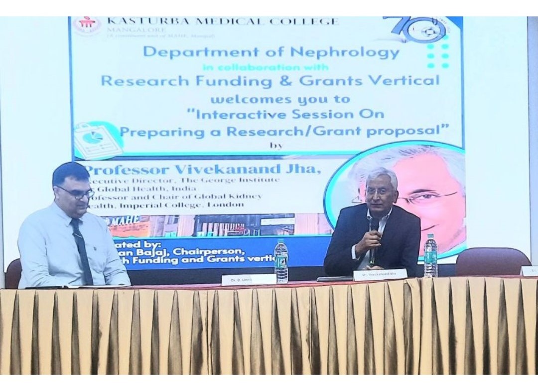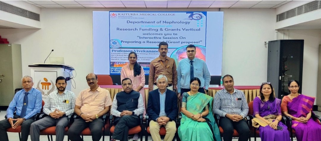 The Department of Nephrology, in collaboration with the Research Funding and Grants Vertical, Kasturba Medical College, Mangalore, organized an interactive session on "Preparing a Research/Grant Proposal" on 19th December 2024 at the Medical Education Unit, KMC, Mangalore. The session was conducted by the renowned academician and researcher, Prof. Vivekanand Jha, Executive Director of the George Institute for Global Health, India, and Professor and Chair of Global Kidney Health, Imperial College, London.