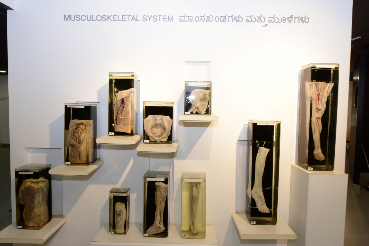 The museum is divided into two main sections: Anatomy and Pathology. The anatomy section displays specimens of normal human body parts and organs in a manner that makes them easy to understand. Each organ system of the human body can be explored as a separate entity. Every bit of the body is displayed from head to toe from different sections. There is a section on comparative anatomy, where a large collection of animals, their skeleton, and bones are displayed. The museum of Pathology displays diseased body parts and organs. The section on life-style related diseases displays specimens of diseases that occur in humans.