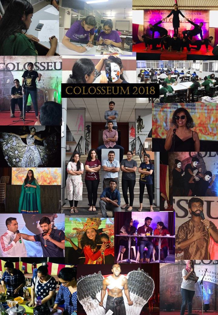 The annual college fest 2018, was a cultural extravaganza titled “COLOSSEUM” held from 8th March, 2018- 15th March, 2018 held at Manipal College of Dental Sciences, Mangalore. The college was at its creative best and saw stellar competition from the undergraduates and post-graduates across all the academic years along with enthusiastic participation from the staff. The events covered everything from literature, art, music, drama, dance and fashion. This year saw the theme “Colosseum”, the battle amongst the six teams- Messiahs, Mechatrons, Necromancers, Morphians, Cathexis and Valyrians; and the winners took the various memorial trophies and shields distributed in the closing valedictory ceremony.