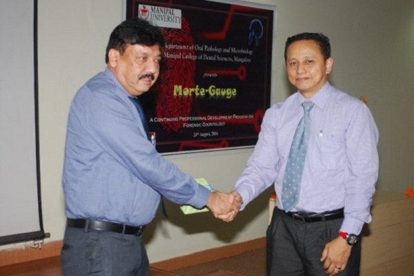 The Department of Oral Pathology and Microbiology, Manipal College of Dental Sciences, Mangalore, Manipal Academy of Higher Education conducted “Morte Gauge” a continuing professional development programme in forensic dentistry which aimed to increase the awareness of medical and dental professionals in medico-legal situations. The program held on 24th August 2016 at MCODS, Attavar was presided by Dr. Dilip G. Naik, Dean, MCODS, Mangalore. Dr. Mohammed Ibrahim, Founding Dean, Faculty of Dentistry, UiTM Malaysia was the Guest of Honour.