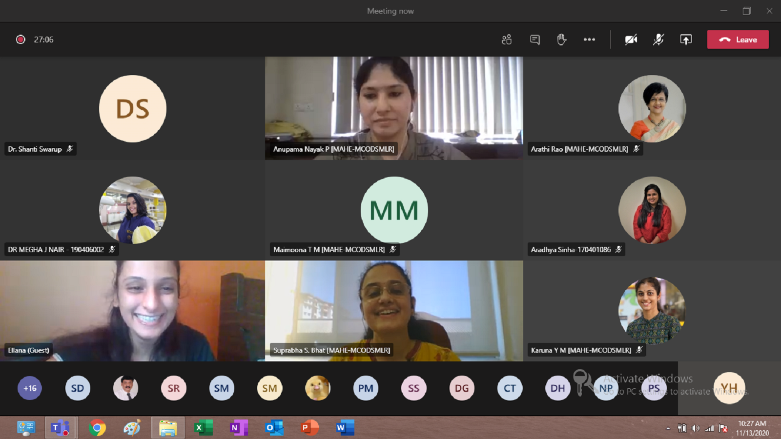 On the occasion of Children’s Day which is also celebrated as Pedodontist’s Day in India, as a part of community engagements for building stronger communities, a patient education booklet titled “ Taking Care of Your Child’s Teeth” was released by Dr. Dilip G Naik, Pro Vice Chancellor, MAHE (Mangalore Campus). Dr. Ashita Uppoor, Dean, MCODS, Mangalore and Dr. Premalatha Rai, Associate Dean, graced the occasion. A Panel Discussion on career options after post-graduation in Pediatric Dentistry titled, “Post-Graduation in Pediatric Dentistry: When, Why, How”, was moderated by Dr. Ashwin Rao, Associate Professor, Department of Pediatric and Preventive Dentistry. Dr. Shanti Swarup, Dr. Vidya Chandran, and Dr. Shweta Rao, Post graduate Alumni of the Department of Pediatric and Preventive Dentistry, enlightened the under graduate students regarding scope of Pediatric Dentistry. The program was well appreciated and attended by 108 participants.