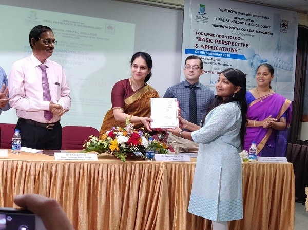 Students of Manipal College of Dental Sciences, Mangalore guided by Centre for Forensic Odontology, Manipal Academy of Higher Education Manipal won the awards at e-poster competition in CDE program titled “Basic Perspective and Applications in Forensic Odontology” organized by Yenepoya Dental College and Hospital, Mangalore.