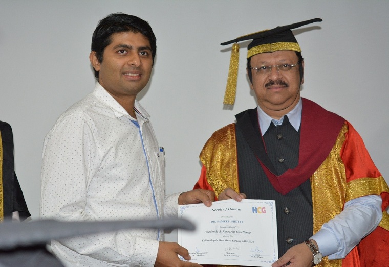 Dr Sameep S. Shetty, Reader, Department of Oral & Maxillofacial Surgery, was awarded a Certificate for Excellence in Research (17publications in 2019 and letter of appreciation by Elseiver oral oncology journal) by Dr Sacchidanand Vice Chancellor RGUHS