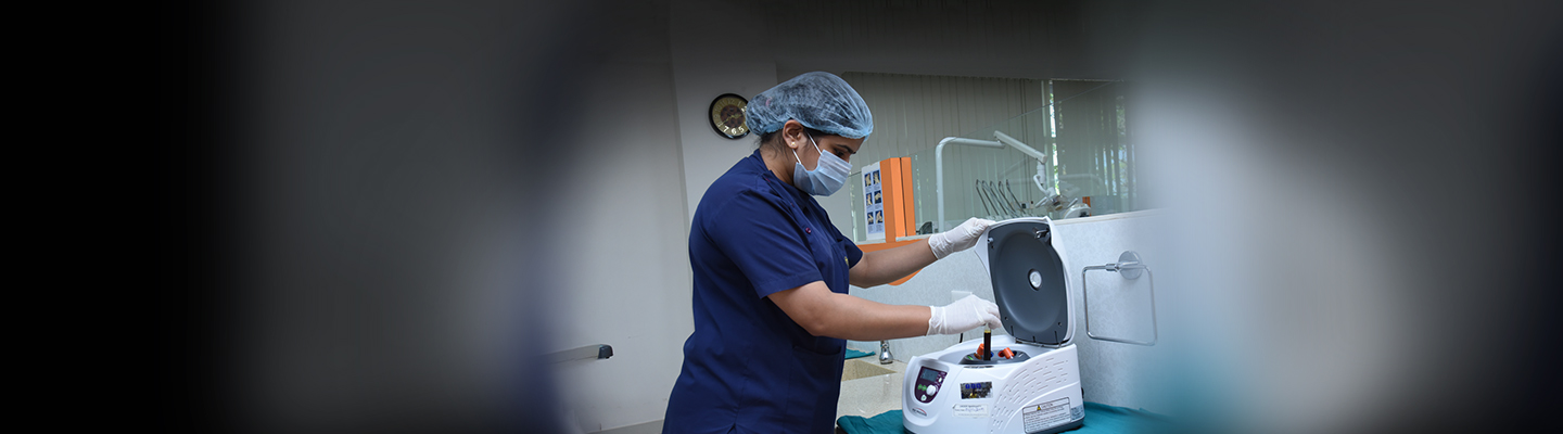 The facilities available in the department include a Platelet Rich Fibrin centrifuge, a surgical microscope, a Piezo surgical unit, a diode laser unit, an electrocautery unit, and a radiovisiography. Various regenerative and esthetic therapies are performed.