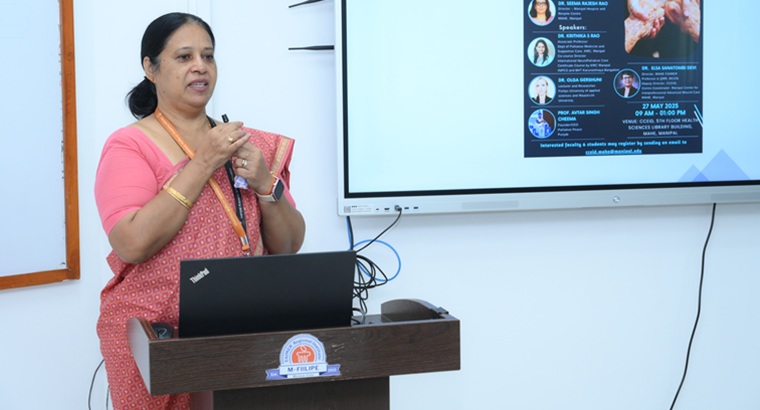 A life changing hands-on workshop was conducted by Centre of excellence in Interprofessional Advanced wound care, Manipal College of Nursing, MAHE Manipal in collaboration with Hospice and Respite Centre (MHRC)and CCEID, exploring the paradigm shift in care of wounds at end of life where empathy took precedence over curative interventions and healing to these patients means being present narrates Dr Elsa Sanatombi Devi the center coordinator. Dr. Seema Rajesh Rao, Director of MHRC, in her maiden talk as the chief guest illuminated her life’s profound experiences caring the patients end of life beyond their physical wounds, touching the inviable wounds within each patient-the vital layers of humanity. Her unique stories made deeper insight into being empathetic while caring with dignity.