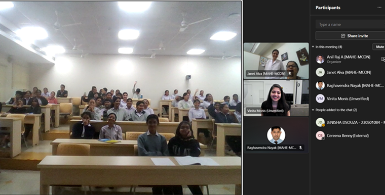As part of the Year of Excellence in Industry–Academia Collaboration at MAHE, the Department of Medical-Surgical Nursing, Manipal College of Nursing, MAHE, Manipal, has organized an alumni guest lecture on the topic, ‘An International Perspective on Nursing Management of Post-Surgical Oncology Patients’ on 12.06.2025. Ms. Vinita Rosa Monis, Registered Nurse at Michael Garron Hospital (Toronto East Health Network), alumna of BSc (N) 2018-2022 Batch, was the resource person. During her session, she emphasized the nursing management of patients with intercostal drainage, patient-controlled analgesia, Jackson-Pratt (JP) drain, Penrose drain, and colostomy. The session has aimed to enhance the clinical competencies of nursing students in providing specialized surgical and post-operative care for patients. The deliberation of the session was in alignment with SDG 3: Good Health and Well-being and SDG 4: Quality Education. The lecture comprehensively covered the indications, mechanisms, and step-by-step nursing care approaches associated with intercostal drainage systems, particularly in cases of pneumothorax and pleural effusion, focusing on aseptic care, air leak monitoring, and respiratory assessment. In addition, patient-controlled analgesia (PCA) was discussed in detail, with emphasis on pain autonomy, drug administration safety, sedation monitoring, and patient education to ensure effective pain control with minimal risks. The nursing care and maintenance of JP and Penrose drains were addressed with a focus on drainage monitoring, infection prevention, documentation, and skin care around the insertion site. Colostomy management included pre- and post-operative nursing responsibilities, pouch application techniques, peristomal skin integrity maintenance, and psychosocial support for patients adapting to altered body image and bowel elimination patterns. The speaker skilfully linked each clinical aspect with nursing responsibilities and encouraged students to practice compassionate and culturally sensitive care. The session also highlighted the integration of SDG 3 by promoting optimal post-operative care and complication prevention to improve recovery outcomes and reduce patient morbidity and mortality. SDG 4 was addressed by promoting competency-based learning and skill acquisition through an expert-led, interactive educational platform that emphasized experiential learning, clinical reasoning, and safe practice. A total of 134 undergraduate students, including four faculty members, attended the session. The session was concluded with a closing remark by Ms. Aarushi, a 4th-semester BSc Nursing student of MCON, MAHE, Manipal, and it was well appreciated by the participants.