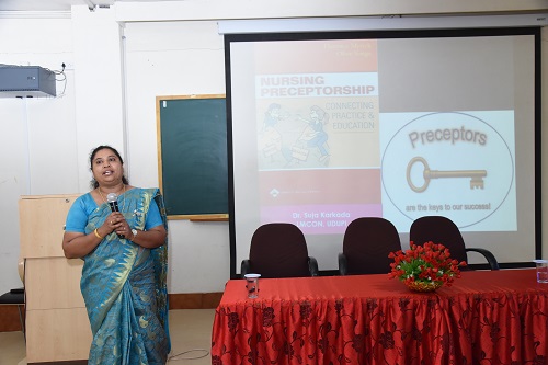 Dr. Suja Karkada an eminent alumnus (MSc 1996-98, MPhil 2000-02, PhD 2010) and Principal, College of Nursing, Lombard Memorial Hospital, Udupi deliberated on “Concepts of interpretation of preceptorship” from her experience from Middle East. She focused on the strengths and challenges of preceptorship program and its applicability to Indian settings.
