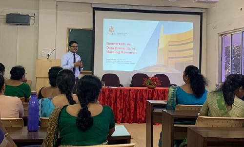 A distinguished alumnus of MCON, Dr.Vishnu Renjith (Alumnus of BSc 2006-10, MSc 2011-13, PhD 2017) Lecturer, School of Nursing and Midwifery, Royal College of Surgeons of Ireland-Bahrain took a session on “Biomarkers as Data Elements in Nursing Research” during this Alumni Meet. In his talk, he focused on principles and scope of biomarkers for nurse researchers and presented relevant study findings from nursing practice.