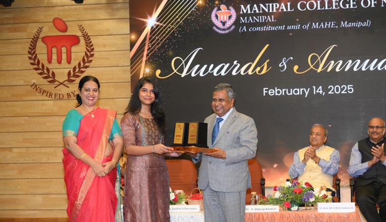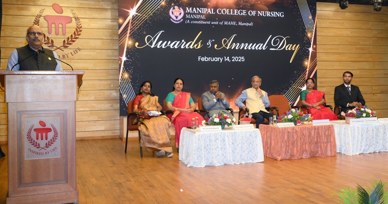 “In the future era of specialization, there is an increasing need for specialized nursing. Manipal has truly reached the length and breadth of the world with its excellence" said the Chief Guest of the day, Dr. T Dileep Kumar, President, Indian Nursing Council, New Delhi, during the 35th Awards and Annual Day of Manipal College of Nursing (MCON), Manipal Academy of Higher Education (MAHE), Manipal, held on 14 February 2025, at Dr TMA Pai Auditorium, MAHE, Manipal. He also emphasized the importance of a nurse in the health care delivery system and called for investing money in nursing, creation of nursing positions, interprofessional leadership and enhancing service delivery.