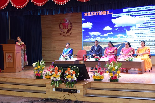 She also mentioned that young professionals developed by MCON need to shoulder to new responsibilities and newer healthcare needs of the clients. The Guest of Honour, Mr. Srikanth Phulari, Registrar, Karnataka State Nursing Council, Bangalore in his address congratulated MCON for being a pioneer in the field of nursing profession. He also appreciated the resources provided to the students in the form of excellent faculty and infrastructure for their learning. He also added a note on online registration of nurses in Karnataka State.