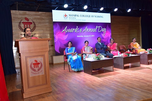 Nurses form the largest cadre of professionals in the health care setup. Nursing profession needs a complete image change to achieve the Sustainable Developmental Goals (SDG) and there is an urgent need for transformation in both government and private sector said Dr. Rathi Balachandran, Assistant Director General of Nursing, Ministry of Health and Family Welfare, Govt. of India during the 24th Awards and Annual day function of Manipal College of Nursing Manipal MAHE.