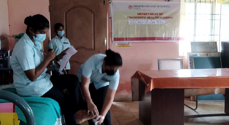 A role play was performed on the importance of screening, early diagnosis and accessing health care at time by 2nd year BSc Nursing students which was followed by health education on management of diabetes mellitus by Umair Shah and Nikhil Castelino. A demonstration of foot care was performed by Jesvita and Anishka. The vote of thanks was given by Flavian D'souza and Mrs Manjula also concluded the meeting.