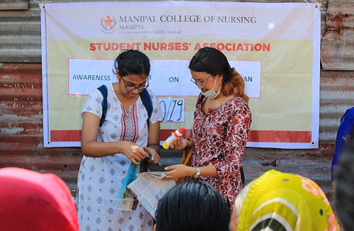 As part of Swachh Bharat Abhiyan, the students of Manipal College of Nursing Manipal organized a slum visit on 2nd October, 2019 from 10.30 am to 12 noon at Beedinagudde slum, Udupi to create awareness among slum dwellers about plastic ban.