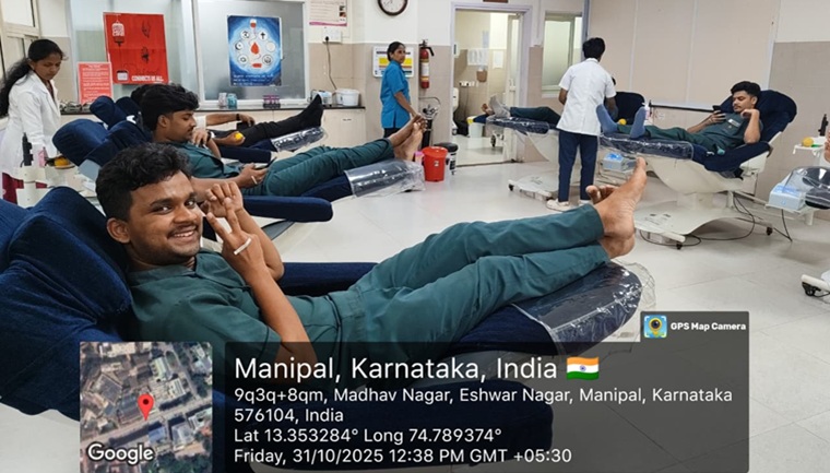 The Health and Social Welfare Committee of Manipal College of Nursing (MCON), Manipal Academy of Health Education, Manipal, organised a blood donation drive on 31st October 2025 at the Blood Centre, Kasturba Hospital, Manipal, from 9:00 AM to 5:00 PM. A total of 100 students and five faculty members from MCON volunteered to donate blood. Following the initial screening process, 63 volunteers successfully donated blood. The event was coordinated by the student chairperson of the committee, Ms Rosmi Ann Reji, along with Ms Marita Dsouza and Ms Kesia Shaji Thomas, students of the 7th Semester BSc Nursing program. The coordination was carried out under the guidance of Mrs Janet Alva, Assistant Professor and Faculty Advisor, and Dr Shalini G. Nayak, Assistant Professor – Senior Scale and Faculty Co-advisor. This initiative contributes to Sustainable Development Goal 3: Good Health and Well-being, promoting voluntary blood donation and community health awareness.