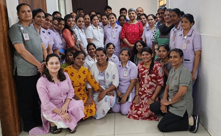 During the visit, Mrs Alice Stella took a “Lymphedema Management” session. A total of 23 students benefitted from this interaction. She further interacted with the staff nurses of Kasturba Hospital Manipal with an introduction to palliative care nursing. A total of 42 staff nurses participated in this session.