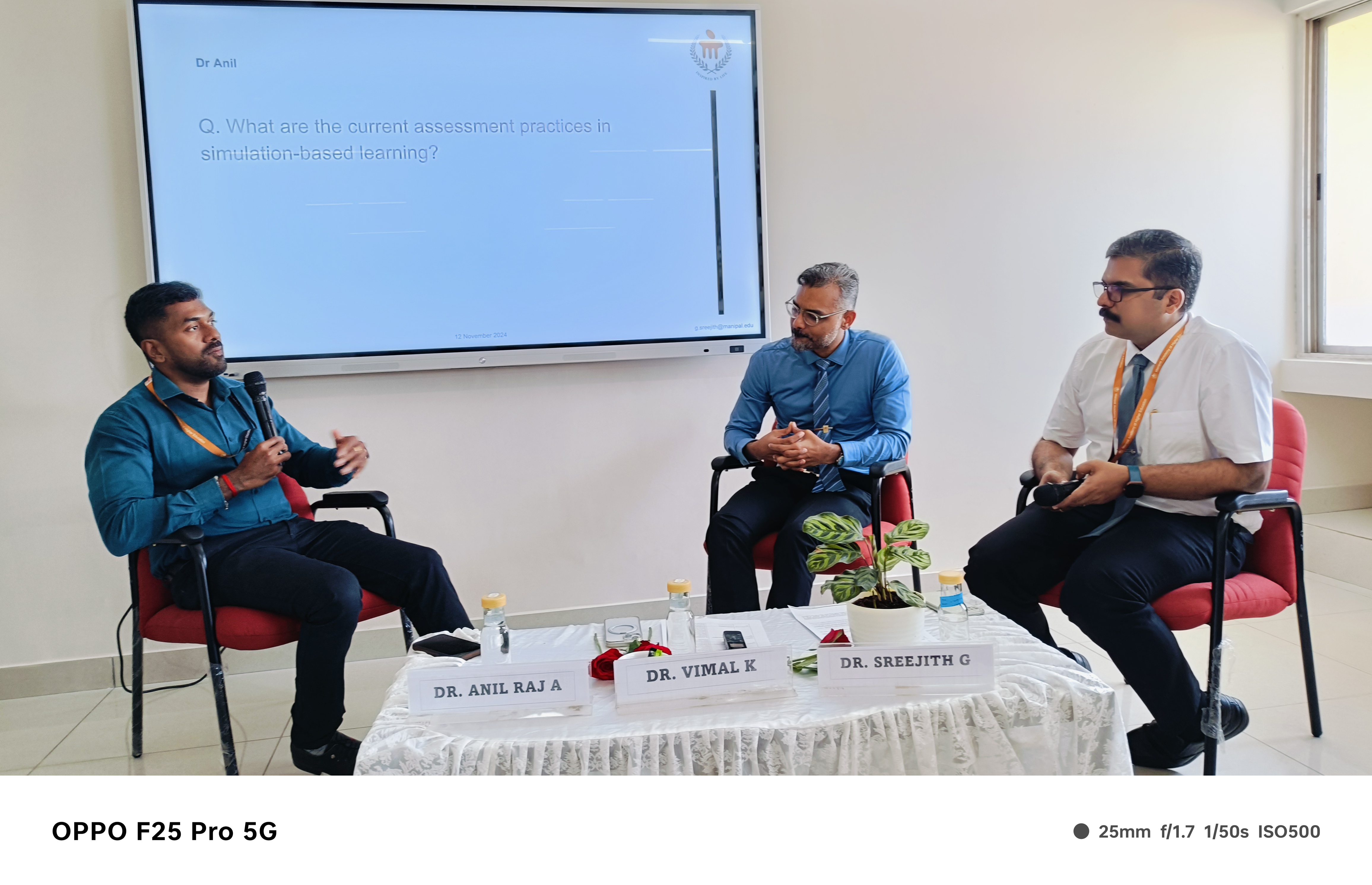 "The curriculum is like the wind—something we can feel but cannot see; it is dynamic and collaborative," said Dr. Sreejith Govindan, Deputy Registrar – Evaluation, Health Sciences, MAHE, Manipal, and Associate Professor of Microbiology, Department of Basic Medical Sciences, MAHE, Manipal, who was the resource person at the conclave. He emphasized that the curriculum has evolved from the 5‘D’s: Definition, Discovery, Dream, Design, and Destiny. He elaborated on those steps through Appreciative Inquiry with small and large group discussions.
