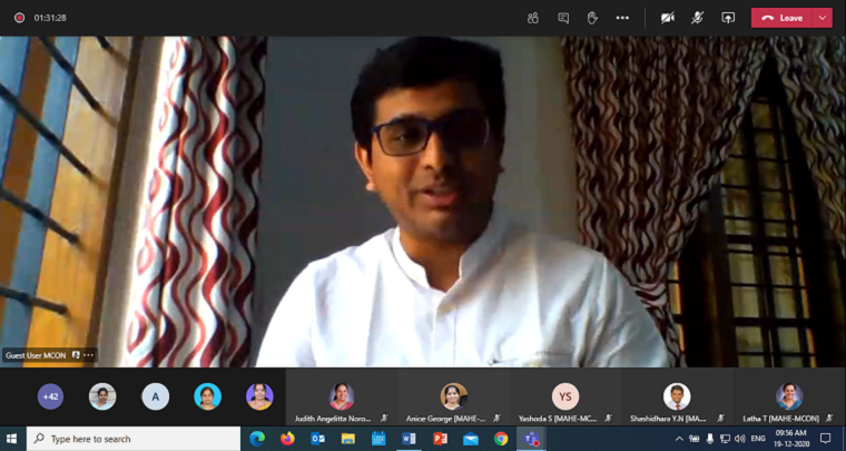 Mr Linto Andrews during his session on simulation-based competency assessment spoke on Simulation as a technique that promotes experiential and reflective learning and can also be used as a teaching and evaluation tool. He also highlighted on different models of simulators that can mimic varied student learning experience. He also explained that simulation-based learning promotes patient safety, offers opportunities to practice and acquire clinical skills, and provides students to experience a safe learning environment. Mr Linto Andrews also stressed on the importance of debriefing its steps, process, types that encourage reflective practices of students. Developing simulation scenarios is one of the significant steps of teaching-learning activity. The session was followed by department wise group activity on developing case scenarios for simulation in breakout rooms of MS Teams, which were later presented with final modifications from experts. A total of 55 participants attended the session.