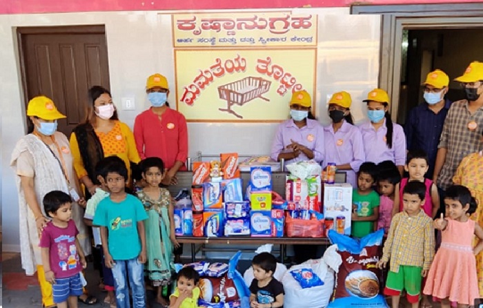 As part of Sneha Daan, a donation drive to socio-economically deprived children was organized. The team visited Krishanugraha - Children Fit Institute and Adoption Centre, Santhekatte, Udupi, on 7th October 2021. The voluntary donations were collected from interested donors and the items received were boiled rice, baby feed formula, milk and milk flavour enhancers, diapers, antiseptic solutions, creams, detergents, toothpaste and fruits. A total of 47 children were present in the centre. The collected items were handed over to the manager of Krishnanugraha. The students of MCON Manipal participated enthusiastically. The Management of the adoption institute thanked and appreciated the contribution.