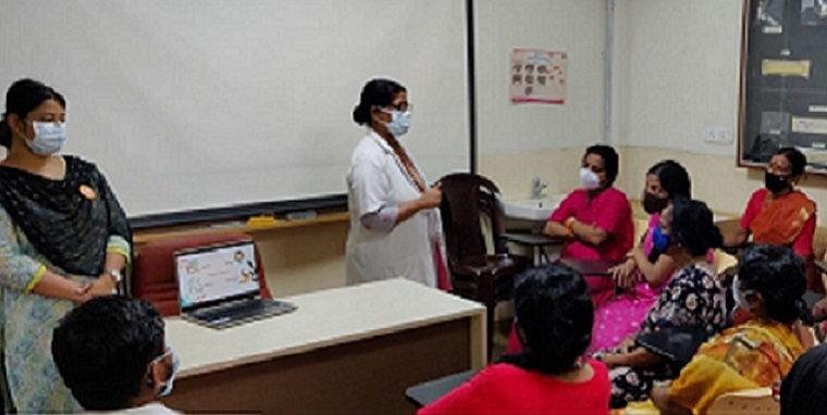Sishu Palana: care of newborn babies, an empowerment session for postnatal mothers was conducted on 6th October 2021. Dr Yashoda Sathish, Assistant Professor – Senior Scale, Department of Child Health Nursing, MCON Manipal taught postnatal mothers and their family members about safe and effective breastfeeding, and the care of newborns at home. There were 22 postnatal mothers who participated actively and clarified their doubts. It was an interactive and interesting session and mothers expressed that it was highly useful. Adequate measures were taken to maintain the COVID-19 protocols, such as all the participants and organizers mandatorily requiring masks, social distancing and provision of hand sanitisers for all the participants.