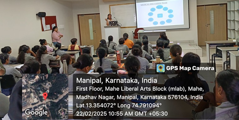 Manipal School of Nursing, MCON, MAHE Manipal, hosted a guest lecture on "Care of the Elderly” on 22nd February 2025, between 10:30 am - 11:30 am. The target audience is First-year GNM students. Ms. Deona Daphney Denis D’Souza, Band 5, Staff Nurse at Northumbria Specialist Emergency Care Hospital, UK (Diploma (N) Batch 2019-2022) was the resource person. She emphasized NHS protocol for geriatric patients, primarily focused on “frailty” identification and management.