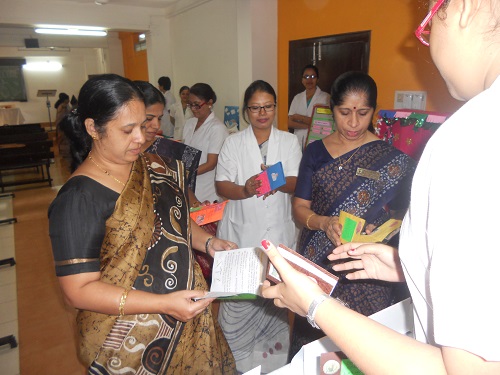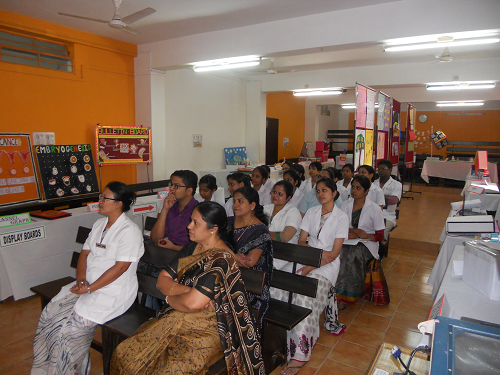 The instructional media were arranged under the classification of display boards, three dimensional aids, printed aids, graphic aids, projected aids and audio- visual aids. The instructional media exhibited under display boards were flannel graph, peg board and bulletin board. The three dimensional aids exhibited were moulage, diorama and model. Teaching machine and puppet were the activity aids presented. The instructional media under printed aids were handouts, pamphlets and booklets. Pictures, photographs and diagram, cartoon and comics, maps, posters, flip charts, flash cards, charts and graphs were put forth under graphic aids. The projected aids exhibited were PPT, LCD and OHP. In the category of audio- visual aid, an educational film ‘How I became a nurse’ was presented.