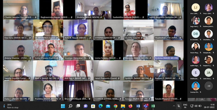 The Continuing Nursing Education committee of Manipal College of Nursing, MAHE, Manipal, organized Faculty Development Program (FDP) on July 28 & 29, 2022. The Chief Guest for the inaugural session Dr. Sathish Rao, Director, Directorate of Research, MAHE appreciated the efforts taken by the institution to be one among the top Nursing Institutions in India & congratulated Dean and her team for successfully holding FDP. He said organizing FDP would strengthen the knowledge and skills of faculty members and will prepare them to take up challenges.