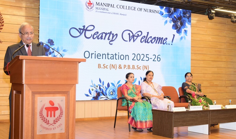 The Chief Guest, Lt. Gen. Dr. M.D. Venkatesh, Vice Chancellor of MAHE, then addressed the gathering. He highlighted the world-class facilities available at the university, emphasized strategic approaches toward achieving global learning outcomes, and urged students to actively engage in the affective domain of education.