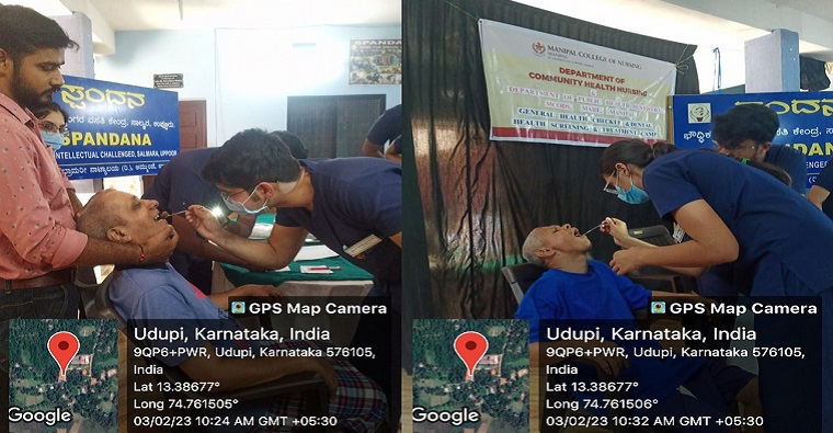 The Department of Community Health Nursing and 2nd year PBBSc Nursing (Batch-II) students of Manipal College of Nursing, conducted a General Health Check-up, Dental screening & treatment camp in collaboration with Public Health Dentistry, MCODS, MAHE, Manipal at Spandana Rehabilitation Center, Kelakudru, Salmara, Uppoor, on 3rd February 2023 between 9.30am to 12.45 pm.