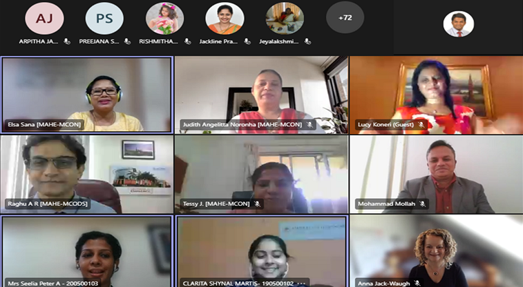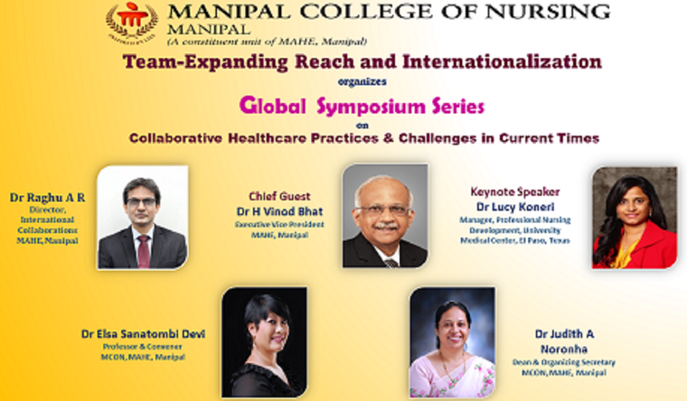 The Manipal College of Nursing, Team- Expanding Reach and Internationalization is organising Global Symposium Series on Collaborative Healthcare Practices & Challenges in Current Times. The inaugural function of the Symposium Series was held on 29th September 2021. Dr H Vinod Bhat, Executive Vice President and Chief Guest of the inaugural function briefed on the importance of collaborative healthcare practices and looking beyond the horizon for opportunities to network and work in partnership to share good practices for quality care. He appreciated the team in bringing relevant research partners from across the globe to lay a strong foundation for quality research and evidence for policy transformation. Dr Lucy Koneri, the Manager, Professional Nursing Development, University Medical Center, Texas during her keynote address emphasized the global challenges concerning leadership roles in areas of collaboration and standardization. She stressed optimizing patient care through specialized training, having a strong regulatory body for quality check, information and service integration with good Wi-Fi connectivity at all centres to reduce the digital divide and cultural sensitivity training and bridging the manpower ratio gaps in healthcare. Dr Raghu AR, Director International collaborations of MAHE Manipal, emphasized health care professionals working together harmoniously for positive patient outcomes. Dr Judith Angelitta Noronha, Dean, MCON, MAHE, Manipal welcomed the novel opportunities of linking interprofessional teams through the Global symposium viewing together for quality healthcare practices. She also acknowledged the paramount support that MAHE endures for progress and connectivity for global impact through networking and research collaborations. Dr Elsa Sanatombi Devi, Pillar Head of Team - Reach and internationalization put forth the importance of having global expert partners and policymakers for evidence and standards to make healthcare practices reliable, accessible, and affordable to the society at large.