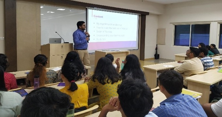 He emphasized the importance of good study habits and reverence for professional nurses. Given the semester-based system with an intense syllabus, assignments, clinical duties, theory classes, and strict attendance policies, students must follow key study tips for success. These tips include goal setting, effective planning, time management, creating an optimal study environment, taking regular breaks and reviews, and maintaining health and support. Techniques such as the Pomodoro Technique, Cornell note-taking method, and Feynman Technique were also discussed. Dr. Renjith highlighted various job opportunities in nursing, including roles in clinical practice, academia, research, consultancy, entrepreneurship, and administration. The session contributed to SDG 4: Good Health and Wellbeing.