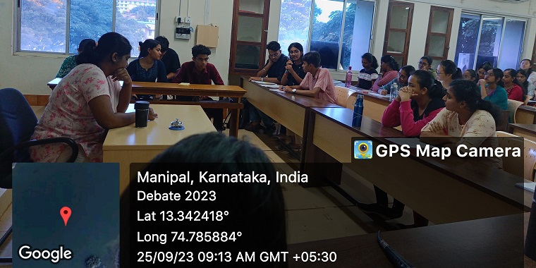 The Department of Fundamentals of Nursing organized a debate for First Semester BSc Nursing students to ignite thinking among the students, a teaching-learning method. The debate was conducted on September 25, 2023, at 9:00 AM on the topic “Is professional conduct vital for nursing students to provide patient care.” There were a total of five teams comprising three members in each. Three teams spoke for the topic, and the remaining two teams against the topic. They justified their viewpoints on professional conduct by giving clinical-oriented examples. The teams argued that the professional conduct among nursing students in clinical settings was as vital as the education and skills required by a student nurse. The students gave relevant examples and scenarios during which a student nurse must choose between the conduct and skills to be provided and the result of the same. In the end, the team, along with the audience, concluded that imbibing the skills and knowledge in hand with professional conduct can make a student nurse more efficient when providing clinical care to patients. The roots that germinate from the beginning as a student nurse can grow into a strong tree when they become a fully pledged nurse with skills and appropriate conduct. The audience at the end provided good feedback. A total of 123 students were present during the debate, including 16 male students and 107 female students. This activity was in line with Sustainable Development Goal 4: Quality Education.
