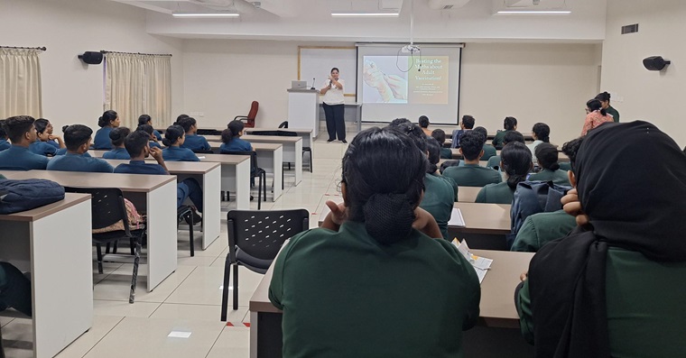 The guest speaker for this session was Dr Akshata R, Assistant Professor, Department of Infectious Diseases. In her session, she addressed the importance of adult vaccination and lessons learnt from the COVID-19 infection. About 80 students and eight faculty attended this programme