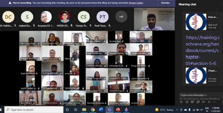 Dr Ravi Shankar explained about meta-analysis, data required for meta-analysis, how to check pooled estimate, heterogeneity, fixed and random effect model and meta-analysis of prevalence studies. Dr Ravi Shankar virtually demonstrated how to conduct meta-analysis using RevMan software. Participants actively participated in both the sessions. Ms Joyce Sangeetha Henry, Research Scholar, MCON, MAHE, Manipal technically coordinated the sessions and Dr Binil V, Dept. of MHAN, MCON, MAHE, Manipal coordinated the sessions as faculty.