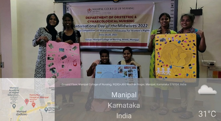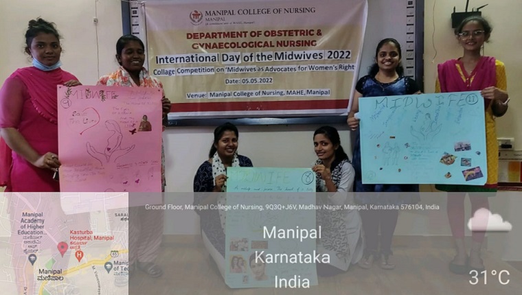 Department of Obstetric and Gynaecological Nursing, Manipal College of Nursing, MAHE, Manipal celebrated the ‘International Day of the Midwives 2022’ on 5th May 2022. The theme for this year provided by the International Confederation of Midwives (ICM) was “100 years of Progress.” As part of this day, various activities and programs were scheduled for three days from 4 to 6 May 2022, which included Reflective writing competition, Collage competition and a Webinar.