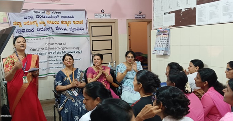 The Department of Obstetrics and Gynecological (OBG) Nursing at Manipal College of Nursing (MCON), Manipal Academy of Higher Education (MAHE), celebrated the ‘International Day of the Midwives 2024’ on May 7th and 8th, 2024, at Dr TMA Pai Taluk Hospital in Udupi and the Primary Health Care (PHC) Centre in Bailor, Karkala. The theme for this year’s Virtual International Day of the Midwife (VIDM) 2024, designated by the International Confederation of Midwives (ICM), was “Sustainable Midwifery: Caring for Tomorrow’s World.”