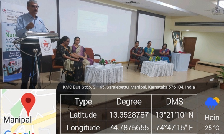 The formal program was organized on 12th May 2022 at the Dr. TMA Pai hall, 2nd Floor, KMC, Manipal. Dr. Judith A Noronha, Dean, Manipal College of Nursing welcomed the gathering. Dr. Soumya Christabel, Convenor, International Nurses Day shared a brief report of the week-long activites conducted. Chief Guest, Mr. C G Muthana, Chief Operating Officer, Kasturba Hospital Manipal during the inaugural address said that, the nurses require competencies to handle various situations like finance, effective communication, and material management including the patient care. He also reiterated the dynamic acquirement of competencies at all levels which starts from unconscious incompetency to the unconscious competency and it has to be acquired through continuous practice and experience. Hence, he opined that is important to gain the highest level of competencies to handle the patient care situation. He also appreciated the nurses’ work and their dedication to patient care across the world.