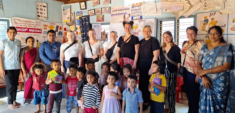 During their observership program, they interacted with Dr Karunakar, the Director of office of international, Dr. Judith A Noronha, the Dean, and the HODs of various departments of Manipal College of Nursing. They have experienced various facilities at Manipal Academy of Higher Education and Kasturba Hospital. They have visited various medical-surgical, pediatric, and OBG wards, and labour rooms. Students also visited Dr. TMA Pai Rotary Hospital, Karkala, to get experience of various hospitals in Karnataka. The students and faculty of Denmark have conducted health education on hand hygiene at various schools and in Anganwadi. They have demonstrated germs on the hands using technology and highlighted the importance of hand washing to the schools and Anganwadi children. They have also experienced the culture of Udupi district, which was shared by Dr Prashant Shetty, Department of Humanity and Philosophy. The Department of Yoga and Ayurveda shared other healthcare practices in India.