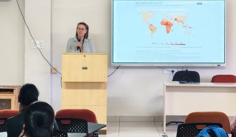 On 10 March 2026, a guest lecture titled “Working Without Borders: Global Perspectives on Midwifery Practice and Professional Scope” was delivered by international faculty of MCON, MAHE, Manipal - Ms Janne Gabrielle Hunsbeth, University Lecturer in Nursing and Midwifery at the University of Stavanger, Norway. The lecture highlighted global perspectives in midwifery practice and emphasised professional development and international opportunities. The session highlighted how midwifery practice extends beyond national boundaries, emphasizing the universal nature of women’s health needs and the shared responsibility of healthcare professionals. The concept of “Working Without Borders” was strongly linked to humanitarian and global health contexts, where midwives play a crucial role in caring for women and girls affected by war, displacement, famine, natural disasters, and refugee crises. The lecture highlighted how midwives contribute to maternal and newborn care in emergency and underserved settings, irrespective of nationality, ethnicity, caste, religion, or socioeconomic status. A total of 60 students benefited from the session. This talk was aligned to the theme, given that Midwifery practice and professional scope go beyond the borders for helping women and girls in need due to various reasons like war, famine, drought, refugee conditions, who need the help of healthcare professionals, without being judged for their colour, caste, and creed.
