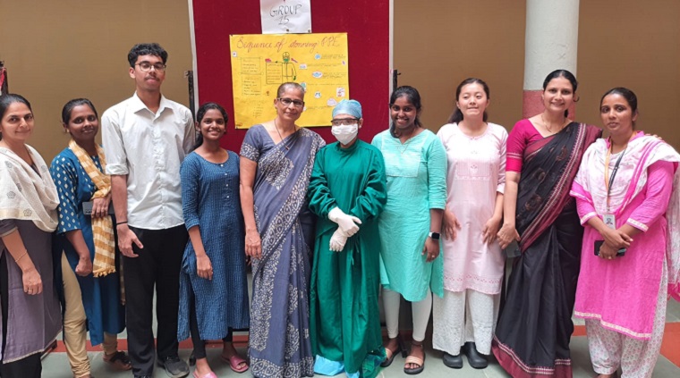 The Department of Fundamentals of Nursing organized a project-based teaching-learning activity for the first semester BSc Nursing students on 26 September 2023 at the Interact lobby, MAHE. The project was on “Infection Control and Safety Measures in the Hospital.” This activity involved the students presenting to their peers with the help of posters and demonstrations. The students were divided into 28 groups with 4 to 5 members in each group. The faculty advisor assigned topics to the students, and they were asked to prepare the posters and demonstration materials for the presentation. The students researched the topic, took assistance from their faculty advisor, and arranged for the activity. The students were also evaluated and awarded the best three posters. The students enjoyed the process and gave positive feedback on their involvement in the activity, which will be beneficial for retaining the content and understanding it better. The activity was held from 9.00 AM to 1.00 PM. The students visited each team and learned from their peers. The department faculty went to each team and asked them questions about the topic to challenge them and inculcate critical thinking in applying this knowledge in patient care. The activity is in line with the Sustainable Development Goal (SDG) 4 - Quality Education.