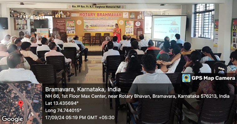 Dementia is a collective name for progressive degenerative brain syndromes which affect memory, thinking, behaviour and emotion. Alzheimer's disease is the most common type of dementia. Department of Psychiatric (Mental Health) Nursing, Manipal College of Nursing, MAHE, Manipal observed Alzheimer’s week from 17th to 20th September 2024 to sensitize the public regarding the early symptoms, prevention and treatment of Alzheimer’s disease. On the 17th Tuesday, an awareness program on Alzheimer’s Dementia, in collaboration with the Rotary Club and Senior Citizen’s Club, Brahmavar, was organized for their members. Dr Savitha Prabhu, Assistant Professor, conducted the awareness session on the importance of early detection, prevention and care of people suffering from Dementia. To sensitize the high-risk group, 5th semester BSc Nursing students enacted a role-play on Alzheimer’s disease, which was well appreciated by the group. The program concluded with an interactive session where the group could clarify their doubts about caring for persons with dementia. The Presidents and the members of the Rotary and Senior Citizen Clubs, Brahmavar, Mr. Renjulal Yesodharan, Assistant Professor, and 5th semester BSc. Nursing students of Manipal College of Nursing were present. Mr. Bhaskar Shetty, President of Senior Citizens, Brahmavar welcomed the gatherings, Mr. Udaya Poojary, Secretary of Rotary Club Brahmavar, delivered a vote of thanks and Mr. Sridhar Shetty, President, of Rotary Club Brahmavar, compered the program.