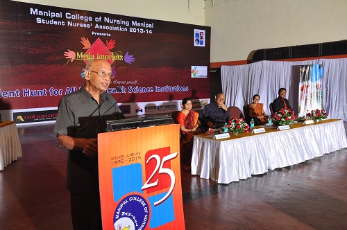 For the award ceremony and the cultural programme the chief guest was Prof. Dr. M.S. Valiathan, National Research Professor, Government of India. Dr. H.S Ballal, Pro Chancellor Manipal Academy of Higher Education presided over the function. The overall championship was won by MCON Manipal. The dignitaries in their speeches emphasized the importance of nursing profession and co-curricular activities. The official function was followed by cultural programme which was put up by students who won the 1st prizes in Western vocal group, Indian vocal group, Indian semi-classical dance and Indian non classical dance. The efforts of SNA advisor, co-advisor, cabinet members, SNA club members; volunteers along with faculty made the extravagance a memorable event. The hard work paid and the result was a grand success. The motto of SNA 2013-2014 “ONE TEAM, ONE SPIRIT, ONE WIN”, made it possible.