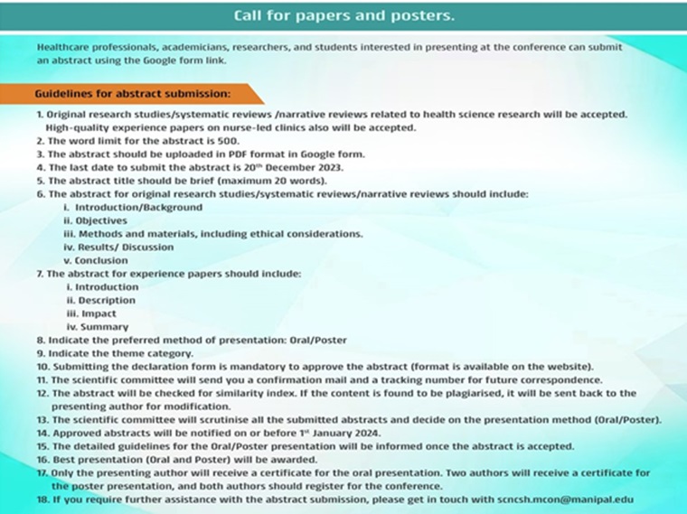 Manipal College of Nursing, Manipal, MAHE, Manipal, is organizing a “National Conference on Nurse-led Developments for Sustainable Healthcare in India” from January 17 to 19, 2024.