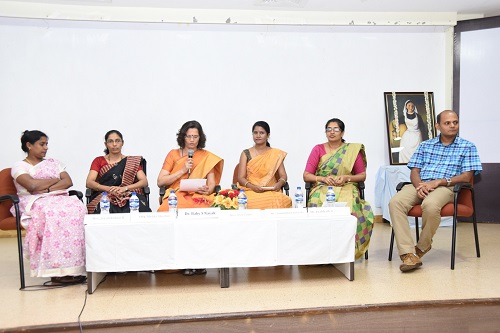 After the inaugural function panel discussion on the theme-Nurses: A voice to lead, Achieving the sustainable development goals was conducted. Dr. Baby S Nayak ,Professor , Department of Child Health Nursing was the moderator and the eminent panel members were Mr. Prabhath Kalkura, Project Manager, Diabetic Foot Care, School of Allied health sciences, Mrs. Eva Chris, Director, Tech2 and Alumnus of Manipal College of Nursing, Mrs. Sushmita Karkada, Mrs. Melita Sheilini, and Mrs. Jeyalakshmi K, Assistant Professors, MCON Manipal.