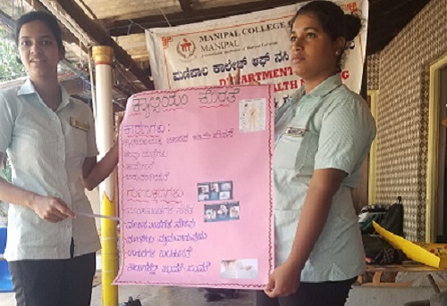 The students of 4th year BSc Nursing, MCON, MAHE, Manipal, conducted a Nutrition Education program on 8/12/18 at Nergi area, Malpe under the supervision of Mrs. Regeena Mathew, Dept. of Community Health Nursing, MCON.