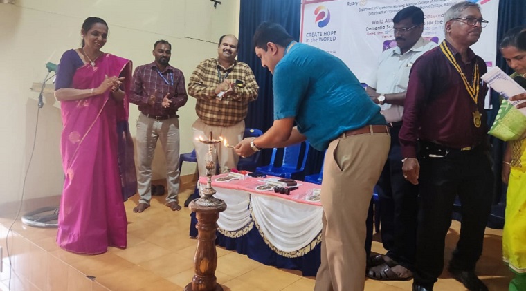 Department of Psychiatric (Mental Health) Nursing, MCON, MAHE, Manipal and the Department of Psychiatry, KMC, MAHE, Manipal jointly organised a Dementia screening camp at Rotary Hall, Shankarpura in collaboration with Rotary Club Shankarpura, Department of Student Affairs, MAHE, Manipal, Primary Health Centre, Moodabettu, St. Johns Church, Shankarpura, and CSI Christha Mahima Church, Manipura. This year's theme for Alzheimer’s Day is “Never too early, Never too late," which underlines not only the essential role of Alzheimer's disease risk factors identification but also the implementation of proactive risk reduction measures to hamper and, if possible, prevent the onset of dementia. The program was presided over by Rtn George D’silva, President, Rotary Club Shankarpura, and the chief guest was Dr Geetha Maiya, Director, Student Affairs, MAHE. Rtn Chandra Poojary, Zonal Lieutenant, Rotary Club Shanakarpura and Mr Sandesh, Community Health Officer, Subasnagara, have also participated in the program. Dr Rashmi and Dr Aravind Pandey, Deputy Directors, Student Affairs, MAHE, were also present. The program is aimed to achieve the sustainable development goal No three (SDG 3) To sensitise the general public about Dementia, Dr Rajeshkrishna Bhandary, Associate Professor, Department of Psychiatry, KMC Manipal, took an awareness session on “Early intervention in Dementia”, and Mrs Asha K Nayak, Assistant Professor, MCON, MAHE Manipal, highlighted the topic “Caring for the person with Dementia”. Dr Rajeshkrishna Bhandary, Associate Professor and Dr Abhiram, Assistant Professor, Department of Psychiatry, KMC, Manipal conducted the screening camp. Mr Roshan David Jathana, Dr Rayan Mathias, and Mr Jeevan Lewis, Student counsellors, MAHE coordinated and managed the participants for the screening camp. Sixty members participated in the program and Forty-one elderly were screened for Dementia. The camp aims to screen the elderly to identify the risk factors for Dementia. People at risk were referred to hospitals for specialised care. The overall program was coordinated by Dr Binil V, Additional Professor and Mr Renjulal Yesodharan, Assistant Professor, Department of Psychiatric Nursing, MCON, MAHE, Manipal.