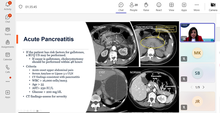 We hosted an alumni guest lecture on "Gastroenterology Case Discussion” on 7th November between 6:00 pm & 7:30 pm. The target audience were students of nurse practitioner in critical care postgraduate residency programme and MSc nursing students. Dr. Simi Jesto Joseph, PhD, DNP, RN, APRN, ANP-C, NEA-BC, FNAP System Senior Director of Nursing Innovation & Research Center at Cook County Health/Gastroenterology Nurse Practitioner highlighted various disorders like gastrointestinal bleed, diverticulitis, abdominal pain, pancreatitis, and abnormal liver function tests. A total of 25 participants (six males and 19 females) attended the session. The session was coordinated by Dr. Jyothi Chakrabarty Professor & HoD, Department of Medical Surgical Nursing.