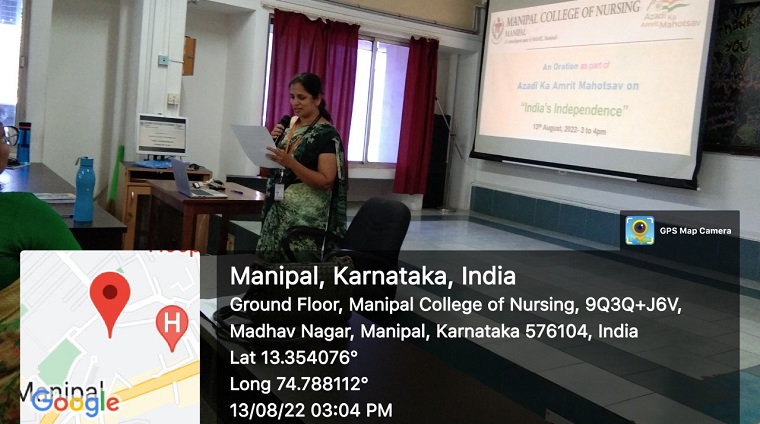 The oration was conducted at Manipal College of Nursing, MAHE Manipal, and was attended by 95 participants of MCON Manipal. This oration was part of the Azadi Ka Amrit Mahotsav calendar activity for the month of August 2022 and was coordinated by Ms. Shalini G Nayak, Assistant Professor; Manipal College of Nursing MAHE Manipal.
