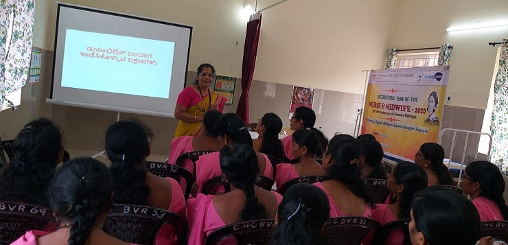 As part of the International Year of Nurse and Midwife, the Department of Community Health Nursing Manipal College of Nursing, MAHE, Manipal conducted a training program for ASHA workers on warning signs of non-communicable diseases on 02/03/2020 at Community Health Centre, Brahmavar, Udupi district. Dr. Ajith Kumar Shetty N, Administrative Medical Officer, CHC Brahmavar was the Chief Guest for the occasion. Dr. Shashidhara Y N, Professor and Head, Dept. of Community Health Nursing presided over the function. The objective of the program was to create awareness among ASHA workers regarding warning signs of non-communicable diseases prevalent in the community.